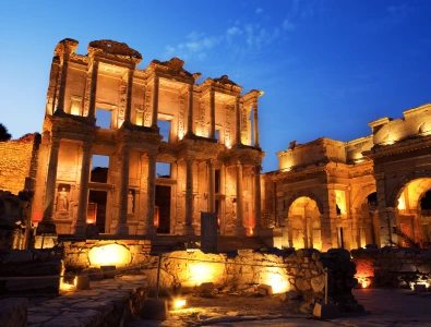 Morgen: Fahrt nach Ephesus, einer der prächtigsten antiken Städte des Mittelmeers. Gehen Sie auf den Marmorstrassen, auf denen einst Paulus predigte. Stehen Sie vor der atemberaubenden Bibliothek von Celsus, die von Millionen fotografiert wurde. Bewundern Sie das 25.000 Sitzplätze umfassende Große Theater und erkunden Sie die Terrassenhäuser (optional), die zeigen, wie wohlhabende Römer vor 2.000 Jahren lebten.